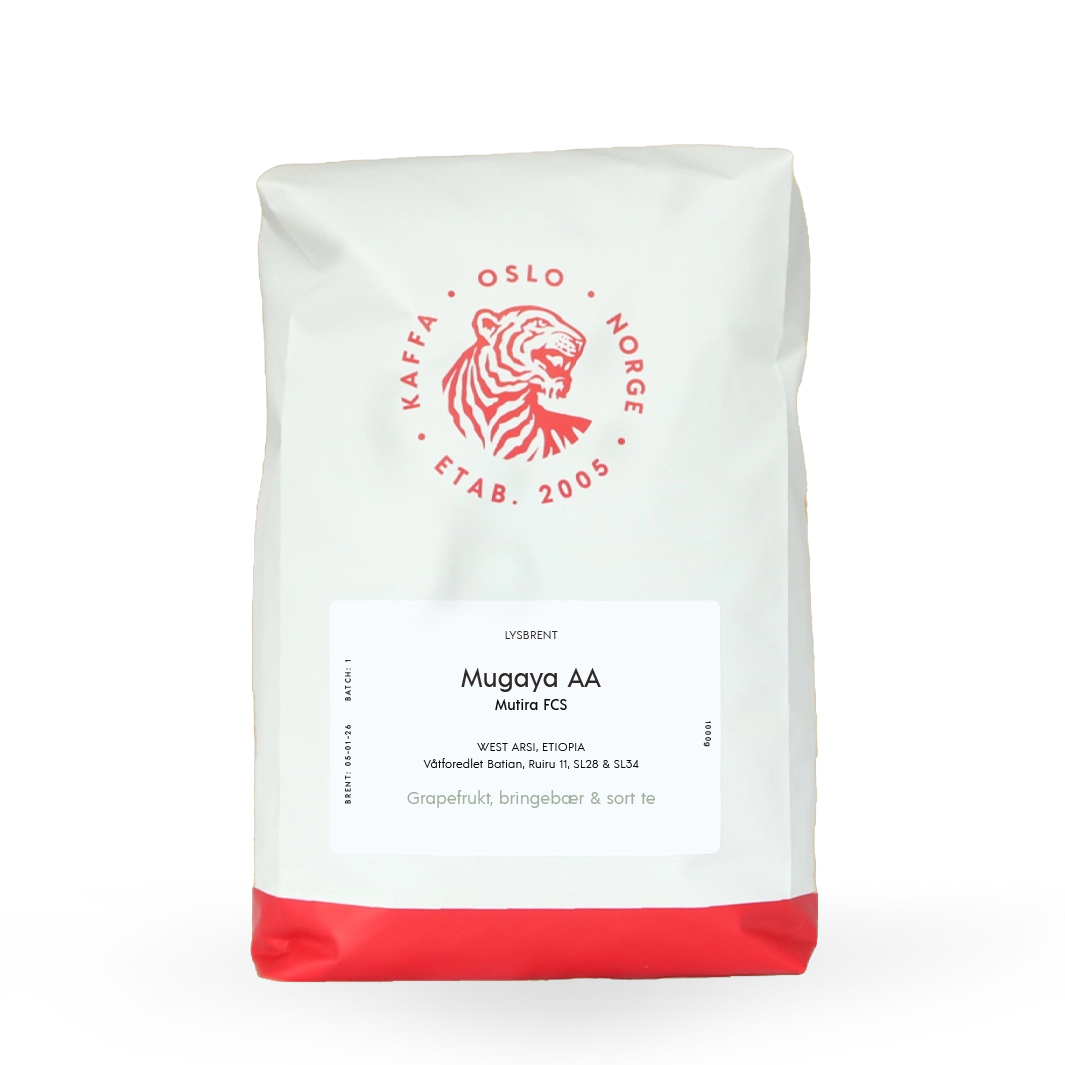 Mugaya Factory drives av Mutira Farmers Cooperative Society og består av nesten 1 900 småbønder. Hver bonde driver små jordstykker på under ett hektar, hvor kaffetrærne vokser side om side med andre avlinger. Gjennom et tett samarbeid med agronomer fra Sucafina og Kahawa Bora, får bøndene tilgang til jordananalyser og teknisk støtte som sikrer at både avlingene og kaffebærenes kvalitet holder et høyt nivå som gir økte inntekter for bonden og bedre kaffe for deg..